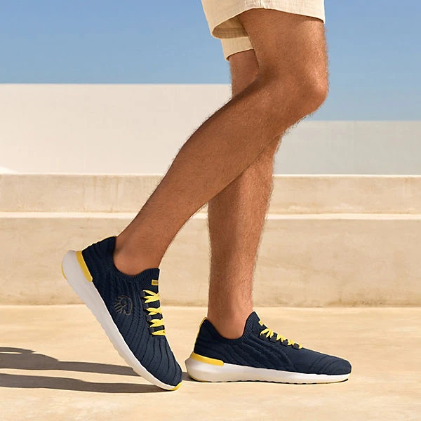 Der Eco Sneaker bietet Komfort-Perfektion aus einem Guss! Das Obermaterial in sportlicher Strickoptik wird nahtlos aus einem einzigen PET-Faden gefertigt. Das Hochleistungsgarn ist dabei für jeden Fuß-Abschnitt speziell verstrickt, um Performance und Komfort ideal zu verbinden. Die 3D Strick-Technik sorgt rundum für eine individuelle Anpassung an den Fuß bei unveränderter Formschönheit. Der Fuß gleitet mühelos in die geschmeidige und glatte Innenseite des Sneakers, die Ferse rutscht leicht und bequem über die spezielle Polsterung auf die hochwertige Merinowolle der Innensohle. Das Performance-Fußbett temperiert den Fuß mit optimalem Schuh-Klima und speichert Energie durch technische Langzeit-Dämpfung. Die stylische Lasche an der Ferse unterstützt das schnelle Hineinschlüpfen in den Sneaker, die dynamische Farbe des Gurtbandes und der Schürsenkel unterstreicht dezent den sportlichen Look. Die EVA-Sohle mit tonal abgestimmten Gummielementen im Zehen- und Fersenbereich vollendet den Look und die Funktionalität des ECO Sneakers: der Grip wird hier maximiert und sorgt für Stabilität bei gleichbleibender Leichtigkeit.
