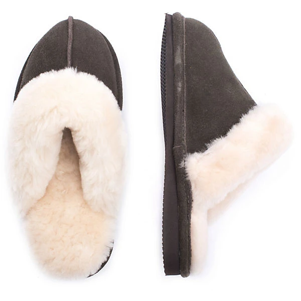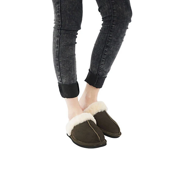 Dieser tolle Damenpantoffel ist aus reinem, Temperatur ausgleichendem Lammfell, das bei Kälte wärmt und bei Hitze kühlt. Das macht dieses Modell zu einem beliebten Hausschuh das ganze Jahr über. Die EVA-Sohle hat dazu noch eine leichte Absatzsprengung.