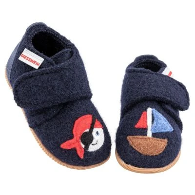 Auf geht’s ins große Abenteuer! Das Modell Ottobrunn entzückt mit einer süßen Piraten-Applikation. Der schmal geschnittene Kinderhausschuh besteht aus weicher Schurwolle und einer festen Naturkautschuk-Sohle, die für den optimalen Gripp sorgt. Die natürliche Wolle hält die Füße deiner Kleinsten kuschelig warm und bindet überschüssige Fußfeuchtigkeit. Der Hausschuh ist dank dem Klettverschluss bestens für die KiTa oder den Kindergarten geeignet.
