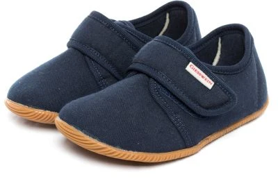 Die neue, besonders gute Passform macht diesen schlichten, unifarbenen Baumwollslipper zu einem tollen Hausschuh für Mädchen und Jungs. Die rutschfeste Naturkautschuksohle und der praktische Klettverschluss sorgen für den nötigen Halt beim Toben.
