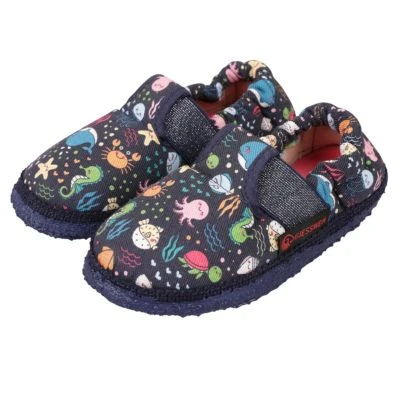Rein ins U-Boot und los geht’s! Der Kinderhausschuh Alzenau gibt Einblicke in die Tiefen der Meere. Vom Seepferdchen bis hin zur Qualle ist alles zu finden, was die Herzen angehender Meeresforscher begehren. Mit den leichten Baumwollhausschuhen geht es auf Entdeckungsreise – der sichere Halt ist durch elastisches Bündchen und rutschfester Kautschuksohle gegeben. Angenehme Kinderfüße sind im Winter und Sommer – sogar barfuß – gegeben. Ideal für Zuhause oder Kindergarten.