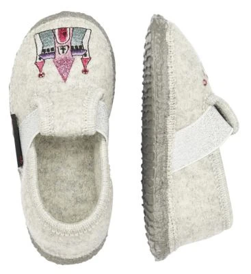 Diese Prinzessinenschuhe lassen Mädchenherzen höherschlagen! Ihr liebevolles Design mit Prinzessin- und Schloss Applikation sowie der hohe Tragekomfort überzeugen selbst verwöhnte Königstöchter. Die kuschelig warmen Filzpantoffeln für Kinder sind dank der weichen Sohle aus Naturkautschuk besonders rutschfest und geben besonders guten Halt. Das elastische Gummiband garantiert leichtes An- und Ausziehen, eine flexible Weite und perfekte Passform für Kinderfüße.